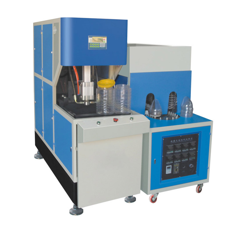 TH-5分為吹瓶主機(jī)以及旋轉(zhuǎn)紅外線加熱器兩部分。因?yàn)槠颗叩钠勘诒容^厚,普通的加熱系統(tǒng)達(dá)不到理想的瓶胚加熱效果,而紅外線加熱器可以穿透瓶胚內(nèi)外,并且加熱持久,均勻,保證了很好的成型質(zhì)量。